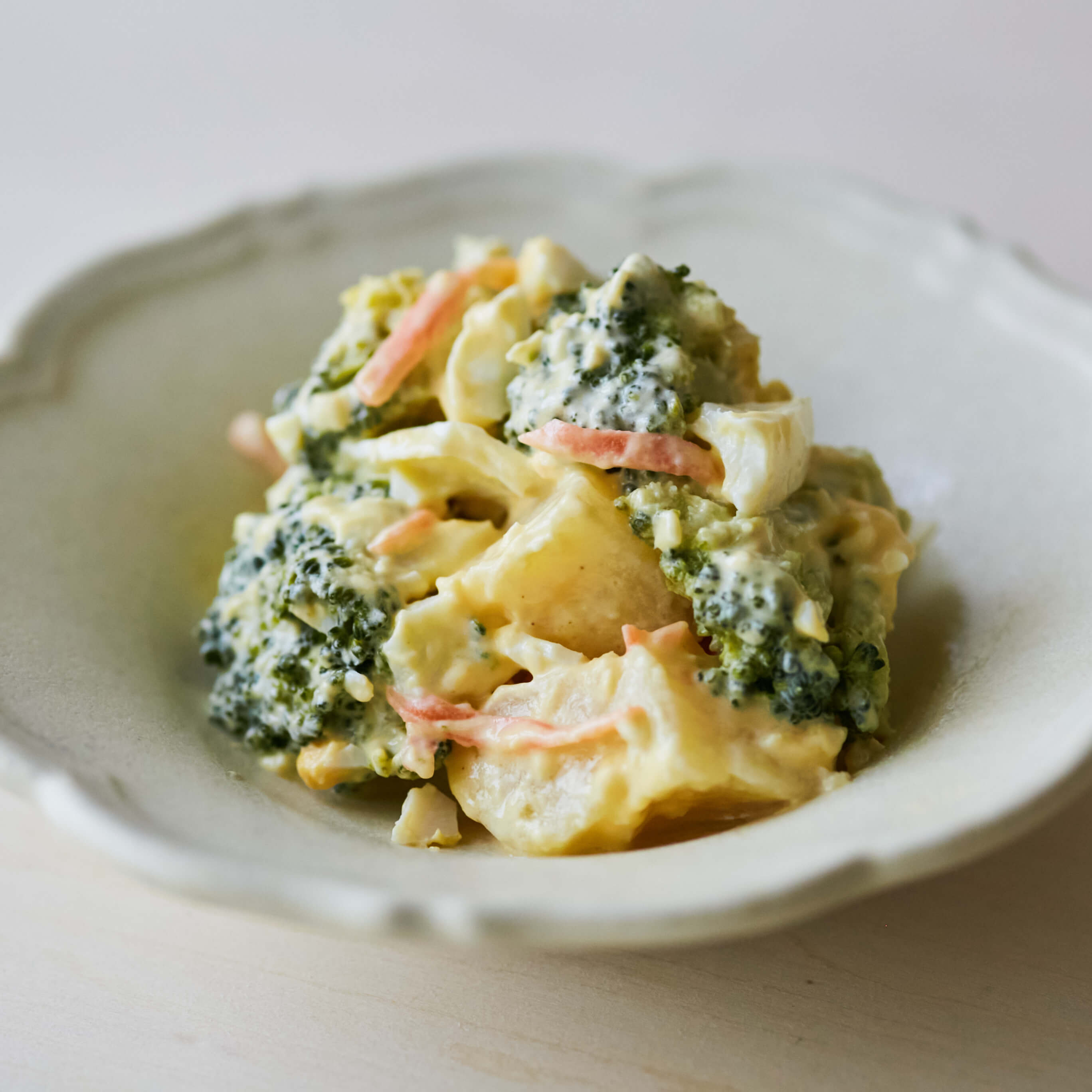 ブロッコリーやポテト、卵を和え、お野菜をたっぷり召し上がれるこちらのメニュー。