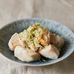 4)大根をお皿に盛り、ひき肉と豆腐のにら炒めをのせて海苔を飾って完成!シャキシャキ大根にたっぷりのそぼろがからみ、サラダなのに満足感のある1品に。酸味のあるお味ですが、お好みで酢なしの甘辛味でも楽しめます☆