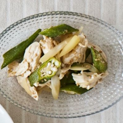 ②蒸し鶏とオクラの和風ナムル